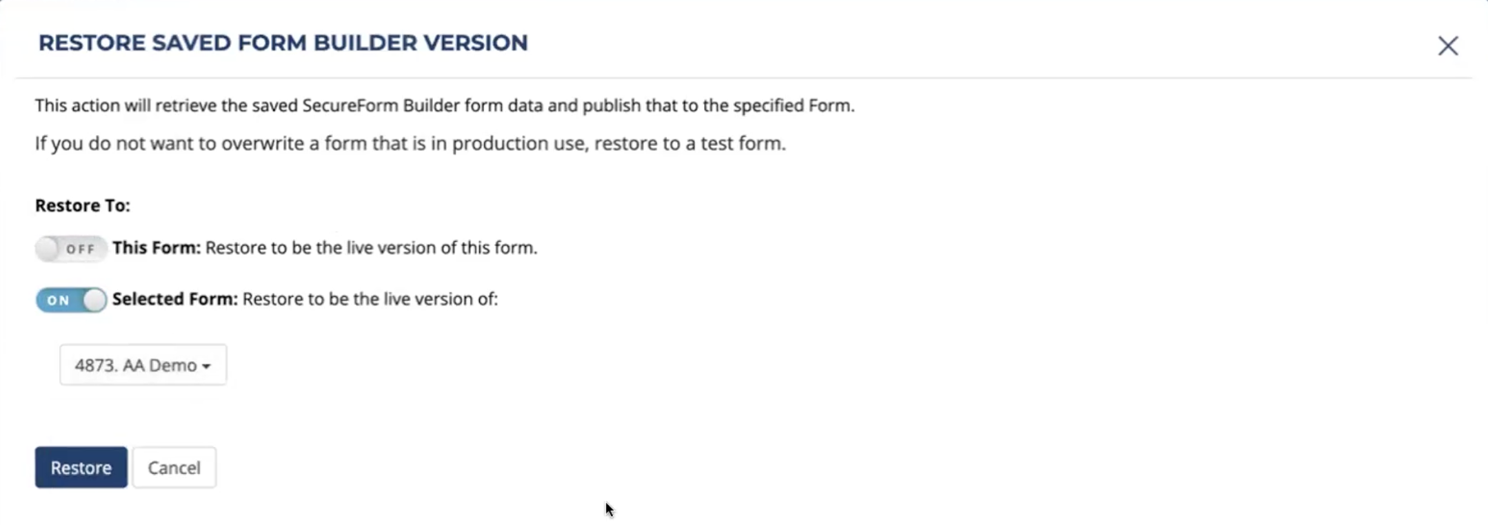 Save History for Previous Version Forms – Restore, Create, Export